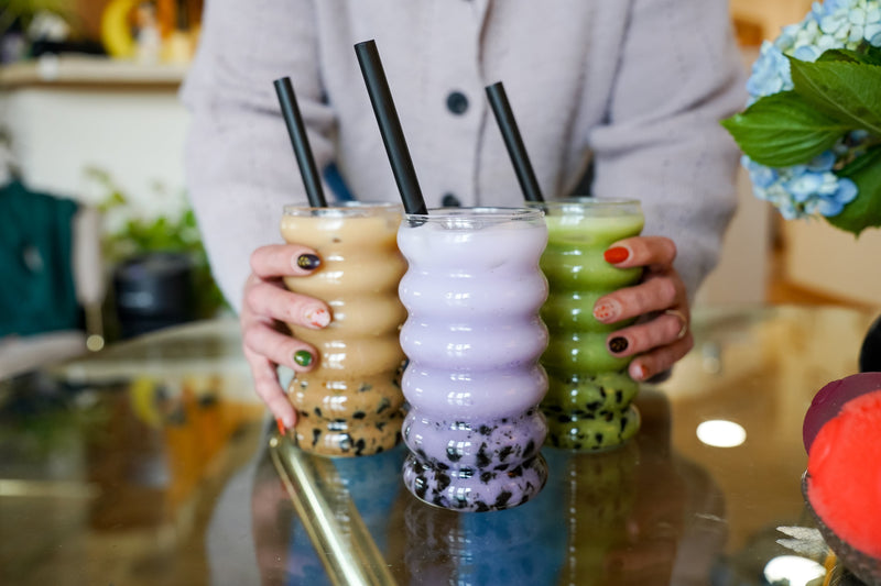 Two of our favorite bubble teas are honey peach pie and salted maple latte: